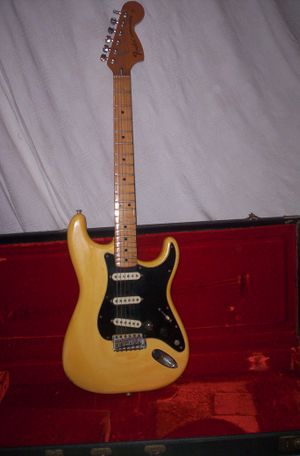 [[File:1976 Fender Stratocaster.jpg |thumb |center |{{Image captions for cleanup |shrink=file |date=June 2017}} Guitar]]